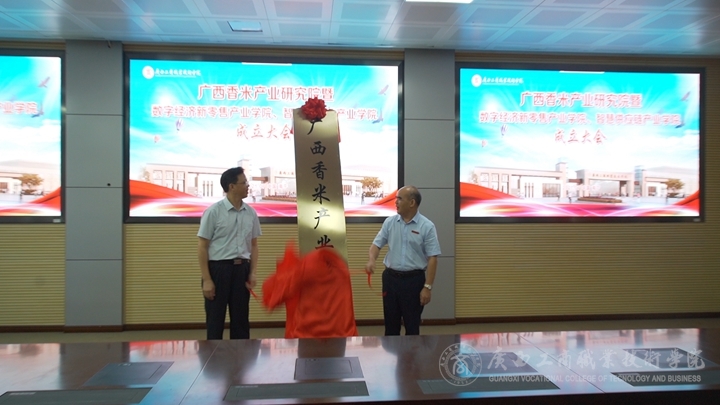 7月14日,廣西香米產(chǎn)業(yè)研究院暨數(shù)字經(jīng)濟(jì)新零售產(chǎn)業(yè)學(xué)院、智慧供應(yīng)鏈產(chǎn)業(yè)學(xué)院在我院鵬飛校區(qū)舉辦成立大會(huì)。