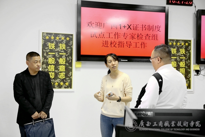 為加強(qiáng)對(duì)全區(qū)試點(diǎn)院校開(kāi)展試點(diǎn)工作的過(guò)程動(dòng)態(tài)管理與實(shí)地指導(dǎo),規(guī)范全區(qū)1+X證書(shū)制度試點(diǎn)工作的開(kāi)展,2021年10月27日上午,廣西1+X證書(shū)制度試點(diǎn)抽查監(jiān)測(cè)工作組廣西建設(shè)職業(yè)技術(shù)學(xué)院教務(wù)科研處處長(zhǎng)付春松、廣西電力職業(yè)技術(shù)學(xué)院繼續(xù)教育與培訓(xùn)學(xué)院黨支部書(shū)記堯有平、廣西工業(yè)職業(yè)技術(shù)學(xué)院智能制造學(xué)院院長(zhǎng)楊銓?zhuān)S同工作組成員前往的還有建設(shè)職院科研科科長(zhǎng)劉海彬一行四人進(jìn)校對(duì)我院1+X證書(shū)制度試點(diǎn)工作開(kāi)展情況進(jìn)行抽查監(jiān)測(cè)。學(xué)院領(lǐng)導(dǎo)闕勇平副院長(zhǎng)及相關(guān)部門(mén)負(fù)責(zé)人參加會(huì)議。