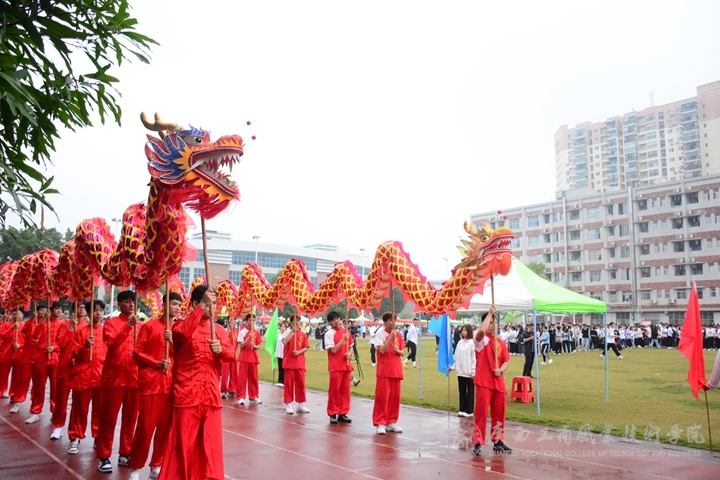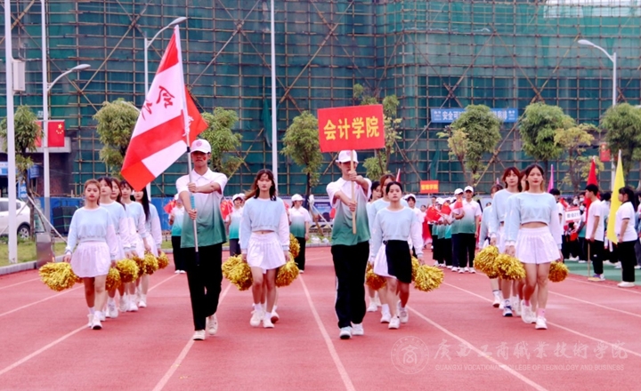 最后,學院黨委書記覃武云和李維院長宣布:廣西工商職業(yè)技術學院2021年秋季運動會開幕。