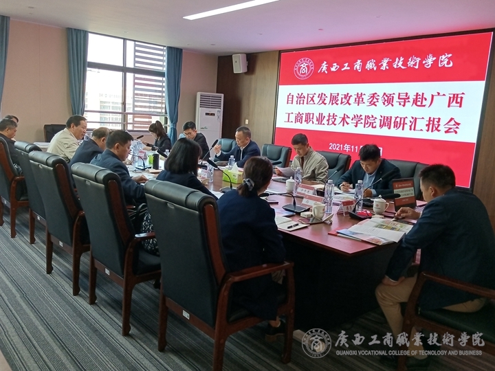 接著,李祚標組長一行在武鳴校區(qū)教學(xué)樓A2-710會議室聽取了學(xué)院有關(guān)工作情況匯報。學(xué)院院長李維從學(xué)院基本情況、武鳴校區(qū)項目規(guī)劃情況、項目推進情況、存在的困難及需要解決的問題等方面匯報了我院武鳴校區(qū)建設(shè)工作情況;學(xué)院紀委書記韋云鳳匯報了我院黨風(fēng)廉政建設(shè)尤其是工程建設(shè)領(lǐng)域監(jiān)督工作的情況;學(xué)院黨委書記匯報了在武鳴校區(qū)建設(shè)中黨委落實主體責(zé)任及黨委書記落實第一責(zé)任人責(zé)任等有關(guān)情況。自治區(qū)發(fā)展改革委社會處楊志鵬處長、投資處方子?xùn)|同志就推動解決我院武鳴校區(qū)建設(shè)有關(guān)問題提出了意見和建議。隨后,李祚標組長對我院有關(guān)工作提出了意見和要求。他對武鳴校區(qū)建設(shè)工作進展表示充分肯定、十分振奮,并就推動我院武鳴校區(qū)建設(shè)和黨風(fēng)廉政建設(shè)工作提出了明確要求。一是深入學(xué)習(xí)十九屆六中全會精神,凝聚力量,鼓舞士氣,教育和引導(dǎo)師生員工在思想上政治上行動上與黨中央保持高度一致;二是堅持問題導(dǎo)向,抓住機遇、提高效率,著力解決武鳴校區(qū)建設(shè)工作中存在的問題;三是進一步加強黨風(fēng)廉政建設(shè),黨委書記、院長要切實負起責(zé)任,加強對干部職工的教育監(jiān)督,結(jié)合近期廣西高校違法違紀典型案例開展警示教育,圍繞查找出來的風(fēng)險點,扎實開展整改,確保武鳴校區(qū)項目建設(shè)平穩(wěn)推進。四是加強產(chǎn)教融合和品牌專業(yè)建設(shè),找準自身定位,突出特色,力求在重點領(lǐng)域上取得突破,推動職業(yè)教育高質(zhì)量發(fā)展。