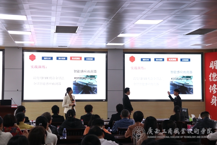 本次決賽共有14位青年教師入圍,隨著經(jīng)貿(mào)學(xué)院葛明慧老師帶來《汽車營銷》課程拉開了比賽的序幕,參賽教師逐一登臺,結(jié)合教案,以教學(xué)演示為主,展示教學(xué)特色、詮釋教學(xué)理念。評委們根據(jù)參賽教師的教學(xué)基本功展示、教學(xué)設(shè)計與課堂教學(xué)效果等綜合評定選手表現(xiàn)。參賽教師們獨到精妙的教學(xué)設(shè)計,豐富多樣的教學(xué)手段,精彩獨到的課程展示,風趣幽默的語言表達贏得了評委專家組的高度認可。