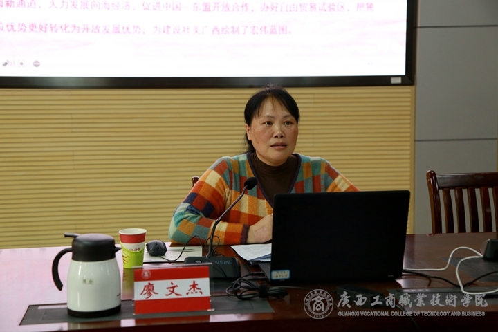 12月23日下午,自治區(qū)黨委黨史學(xué)習(xí)教育第十三巡回指導(dǎo)組專家、廣西幼兒師范高等??茖W(xué)校特殊教育師資培訓(xùn)中心主任廖文杰到我院進行黨的十九屆六中全會精神宣講。學(xué)院黨史辦全體成員,各二級學(xué)院組織員,各二級學(xué)院學(xué)生代表參加了本次會議。學(xué)院黨委宣傳部部長覃遠霞主持會議。