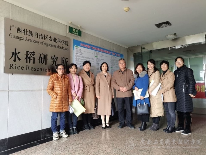 為助力地方鄉(xiāng)村振興,深入了解團體標準化工作,助推地方特色產(chǎn)業(yè)發(fā)展,2022年1月25日,學(xué)院紀委書記區(qū)科技特派員韋云鳳率領(lǐng)我院創(chuàng)新團隊成員一行7人到廣西標準化協(xié)會、廣西壯族自治區(qū)農(nóng)業(yè)科學(xué)院水稻研究所開展調(diào)研活動。