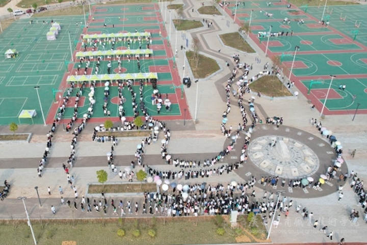 (武鳴校區(qū)有序核酸檢測(cè)現(xiàn)場(chǎng)鳥瞰圖? 財(cái)金學(xué)院供圖)