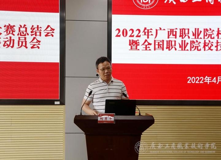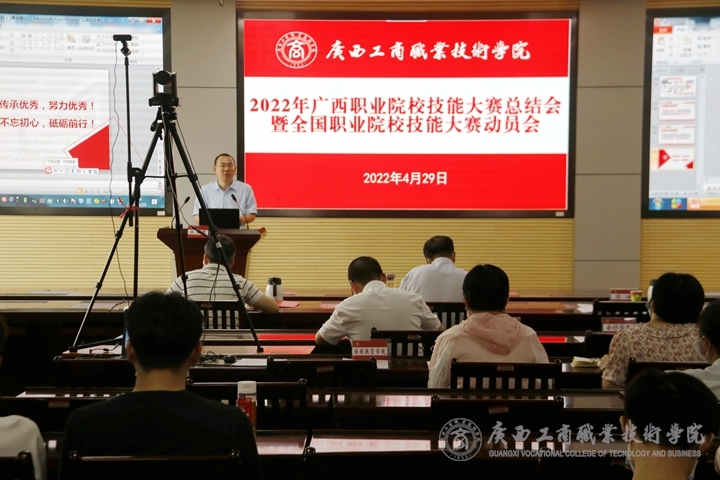 為總結(jié)積累我院在2022年廣西職業(yè)院校技能大賽取得優(yōu)異成績(jī)的經(jīng)驗(yàn),進(jìn)一步推動(dòng)全國(guó)職業(yè)院校技能大賽的參賽工作,4月29號(hào)上午,我院召開(kāi)2022年廣西職業(yè)院校技能大賽總結(jié)會(huì)暨全國(guó)職業(yè)院校技能大賽動(dòng)員會(huì)。大會(huì)在鵬飛校區(qū)設(shè)立主會(huì)場(chǎng),武鳴校區(qū)、中堯校區(qū)設(shè)立多個(gè)分會(huì)場(chǎng),學(xué)院院長(zhǎng)李維、副院長(zhǎng)闕勇平及相關(guān)職能部門(mén)、二級(jí)學(xué)院師生代表參加本次會(huì)議。