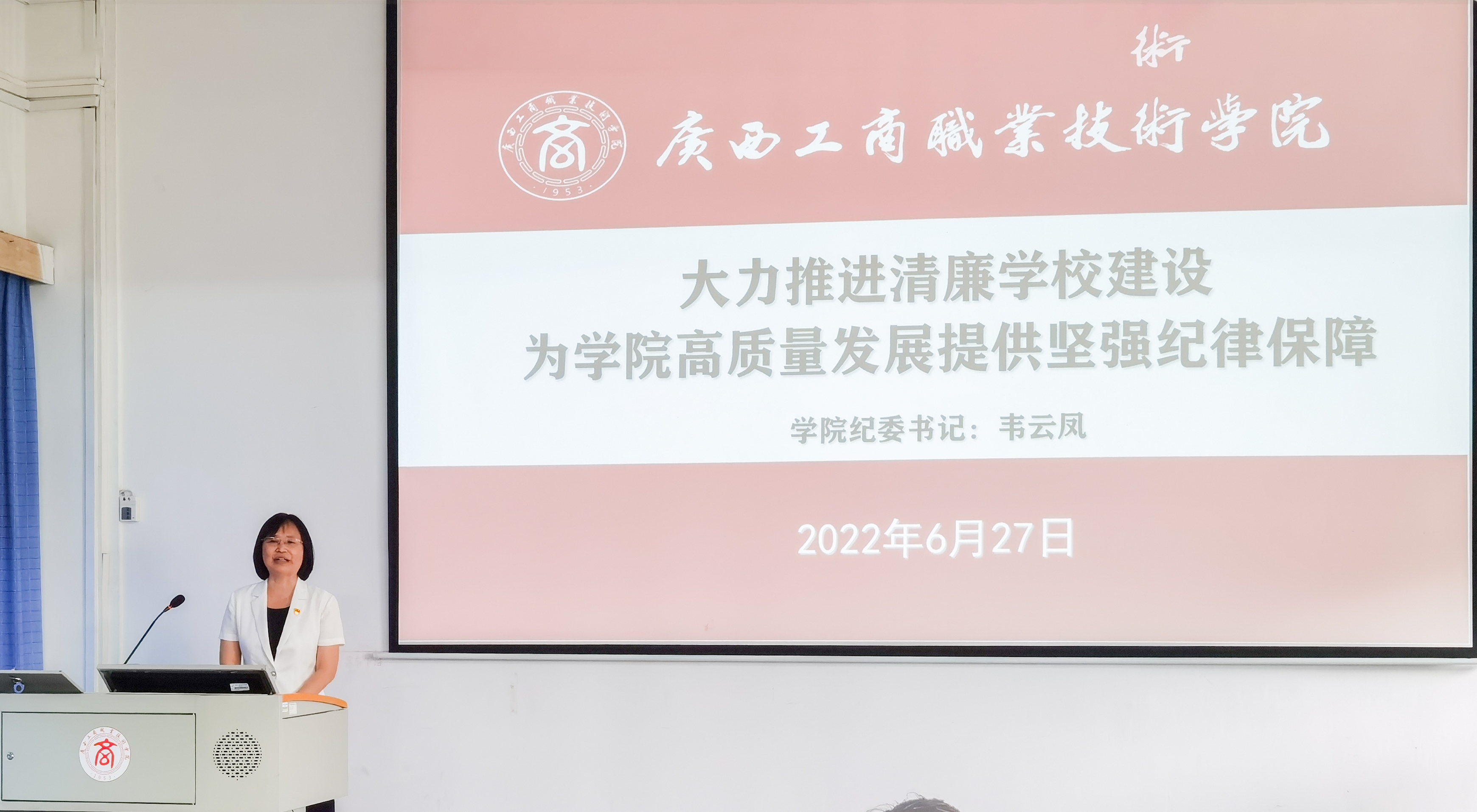 “七一”前夕,6月27日上午,學院紀委書記韋云鳳在中堯校區(qū)2教103大教室給學院離退休老同志上《大力推進清廉學校建設 為學院高質(zhì)量發(fā)展提供堅強紀律保障》的主題黨課,學院離退休老同志近110人參加學習。