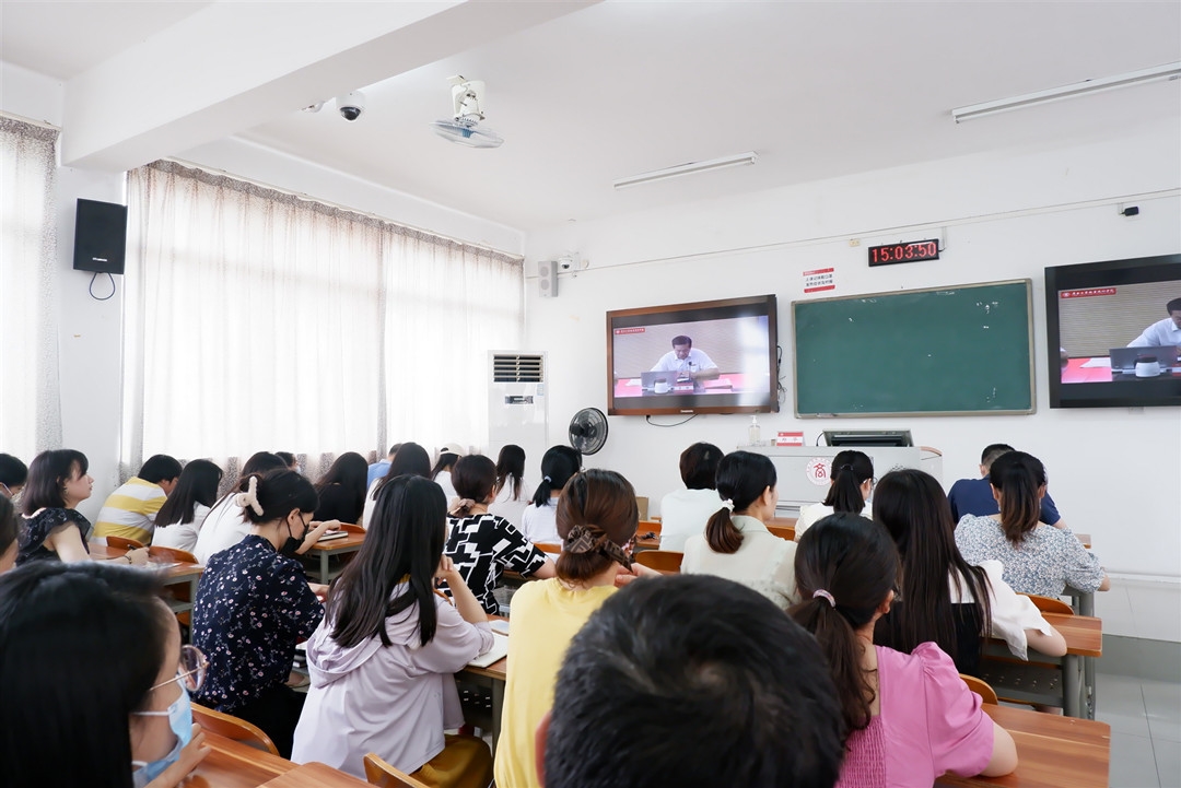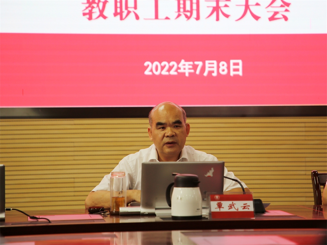 7月8日下午,我院2021-2022學(xué)年第二學(xué)期教職工期末大會(huì)在鵬飛校區(qū)召開。全體學(xué)院領(lǐng)導(dǎo)、教職工參加會(huì)議。會(huì)議由學(xué)院黨委書記覃武云主持。