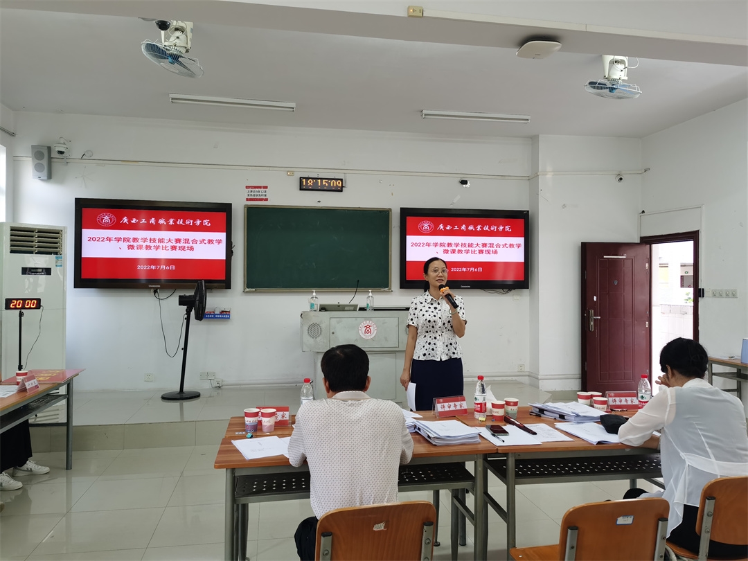 為展現(xiàn)學(xué)院教師風(fēng)采,加強(qiáng)教師隊(duì)伍建設(shè),提高教師教育教學(xué)水平,7月6日,學(xué)院2022年教學(xué)技能大賽混合式教學(xué)、微課教學(xué)比賽在鵬飛校區(qū)2208多媒體教室舉行。