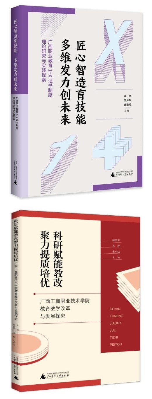 會(huì)后,還進(jìn)行了學(xué)院教育教學(xué)改革探索成果發(fā)布:2022年學(xué)院教師凝心聚力,公開出版了《匠心制造與技能 多維發(fā)力創(chuàng)未來(lái)——廣西職業(yè)教育1+X證書制度理論研究與實(shí)踐探索》《科研賦能教改 聚力提質(zhì)培優(yōu)——廣西工商職業(yè)技術(shù)學(xué)院教育教學(xué)改革與發(fā)展探究》兩部著作。