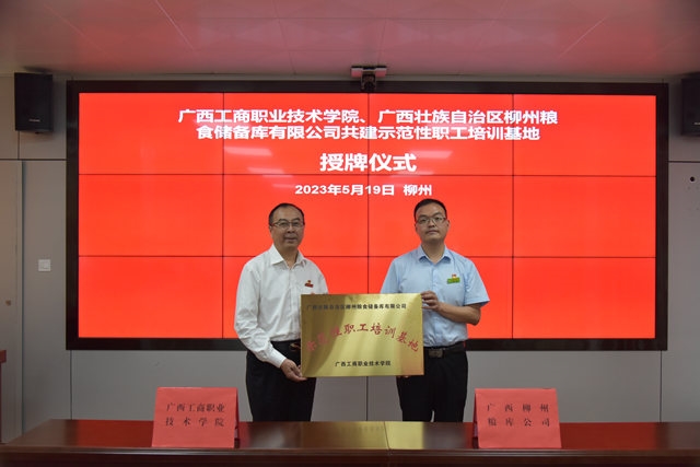 近日學(xué)院在與柳州糧庫(kù)公司的洽談中,了解到當(dāng)前廣西糧食行業(yè)亟需進(jìn)行全方位、深層次的人才培訓(xùn)。結(jié)合柳州糧庫(kù)公司的實(shí)際問題,學(xué)院充分依托在糧食和物資儲(chǔ)備領(lǐng)域的辦學(xué)特色和資源優(yōu)勢(shì),緊貼糧食行業(yè)各類專業(yè)技術(shù)人員在知識(shí)更新、能力提升及業(yè)務(wù)拓展等方面的各項(xiàng)需求,與柳州糧庫(kù)公司達(dá)成校企合作協(xié)議。5月19日,廣西工商職業(yè)技術(shù)學(xué)院、廣西壯族自治區(qū)柳州糧食儲(chǔ)備庫(kù)有限公司共建了示范性職工培訓(xùn)基地,并舉行授牌儀式。下一步,學(xué)院將以校企合作為載體,深度開展校企雙主體育人各項(xiàng)工作,破解企業(yè)職工技能培訓(xùn)以及糧油專業(yè)學(xué)生實(shí)習(xí)和就業(yè)等難題。