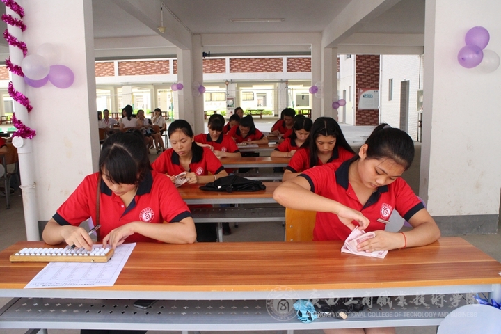而在酒店管理專業(yè)學(xué)生的西餐擺臺、中餐擺臺、餐巾花折疊、調(diào)酒表演等表演既展示出學(xué)生嫻熟的專業(yè)技能,也體現(xiàn)學(xué)院嚴(yán)謹專業(yè)的教學(xué)。同時,會計系學(xué)生在學(xué)生公寓架空層展示點鈔、珠算的技能,嫻熟的珠算打法,撥動的算珠敲擊著算盤框,聲聲連珠陣陣響,學(xué)生低頭認真點鈔,速度手法技巧令人折服。除此之外,書法與攝影作品展示,字跡工整,現(xiàn)場書法,吸引觀眾踴躍嘗試,題詞留下筆墨。學(xué)生各社團紛紛展示才藝,各展特色。