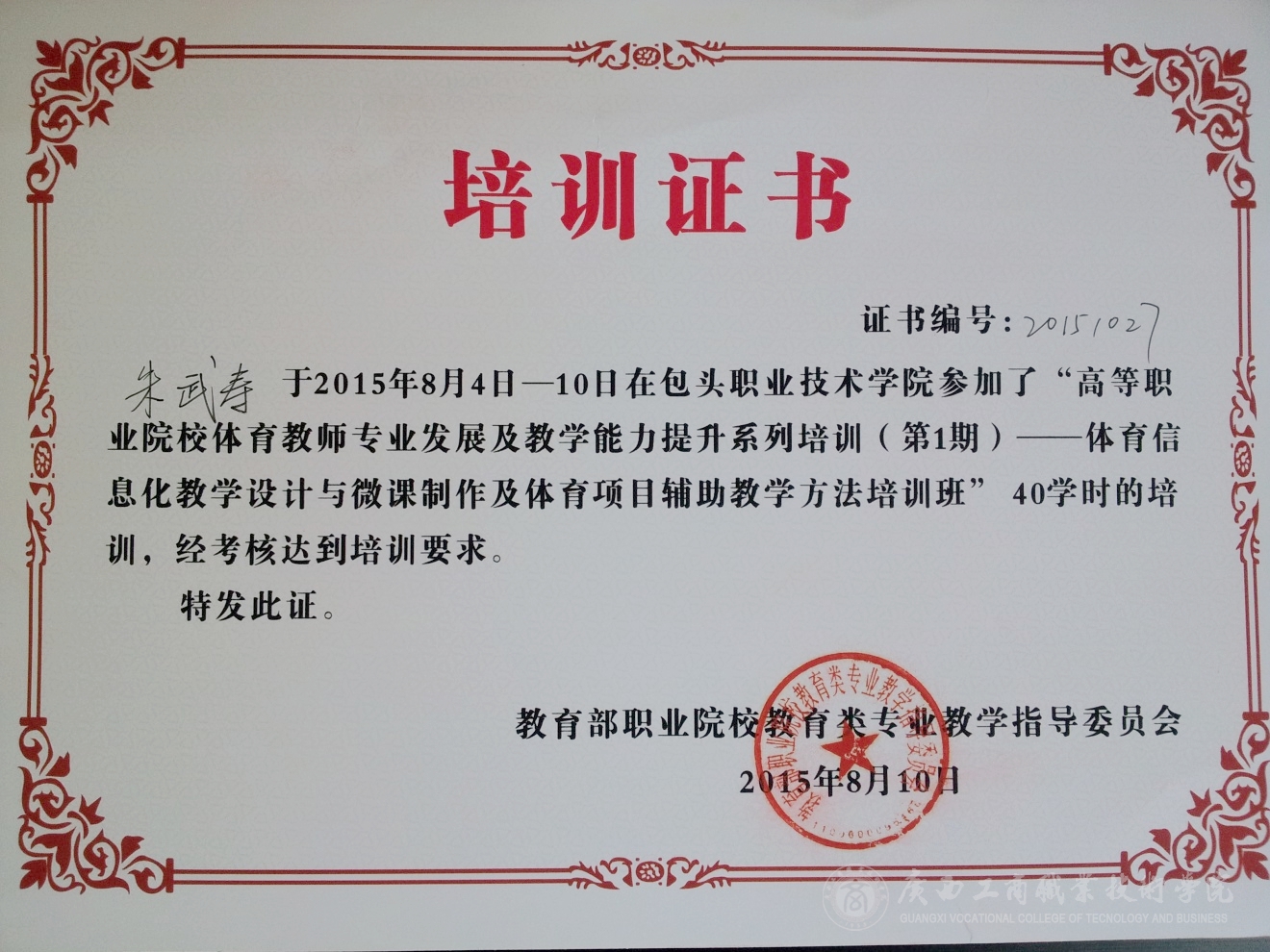2015年8月4—10日,教育部職業(yè)院校教育類專業(yè)教學(xué)指導(dǎo)委員會(huì)在內(nèi)蒙古包頭市舉辦2015年全國高等職業(yè)院校體育教師專業(yè)發(fā)展及教學(xué)能力提升系列培訓(xùn)(第一期)——體育信息化教學(xué)設(shè)計(jì)與微課制作及體育項(xiàng)目輔助教學(xué)方法培訓(xùn)班。