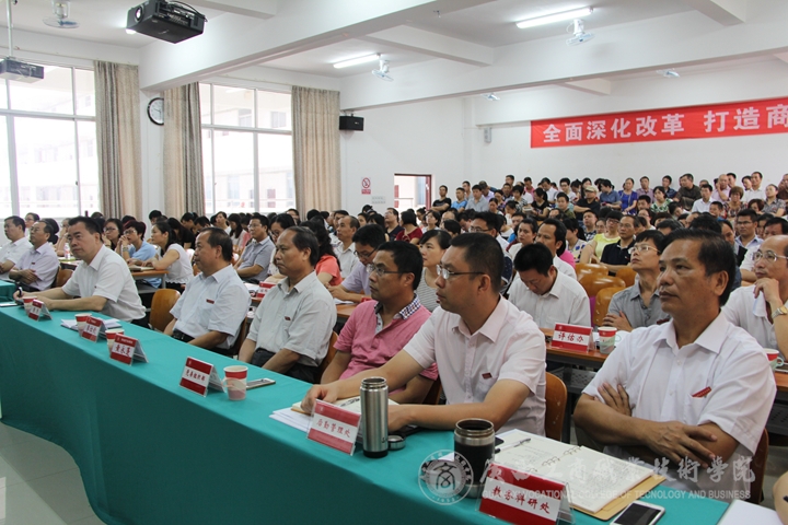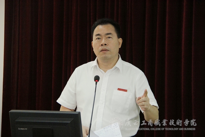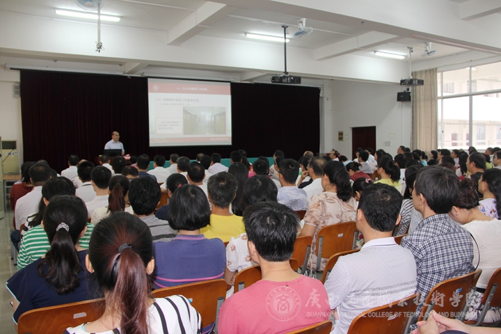 大會上,覃武云書記作了開學(xué)工作報告。在報告中覃書記首先回顧2015年暑假期間各項工作情況。他從黨建、招生就業(yè)、后勤基建、人才隊伍建設(shè)、教育教學(xué)改革、學(xué)生工作等十個方面回顧總結(jié)了暑假期間的各項工作開展情況。覃書記還就開學(xué)初期工作進行了安排。