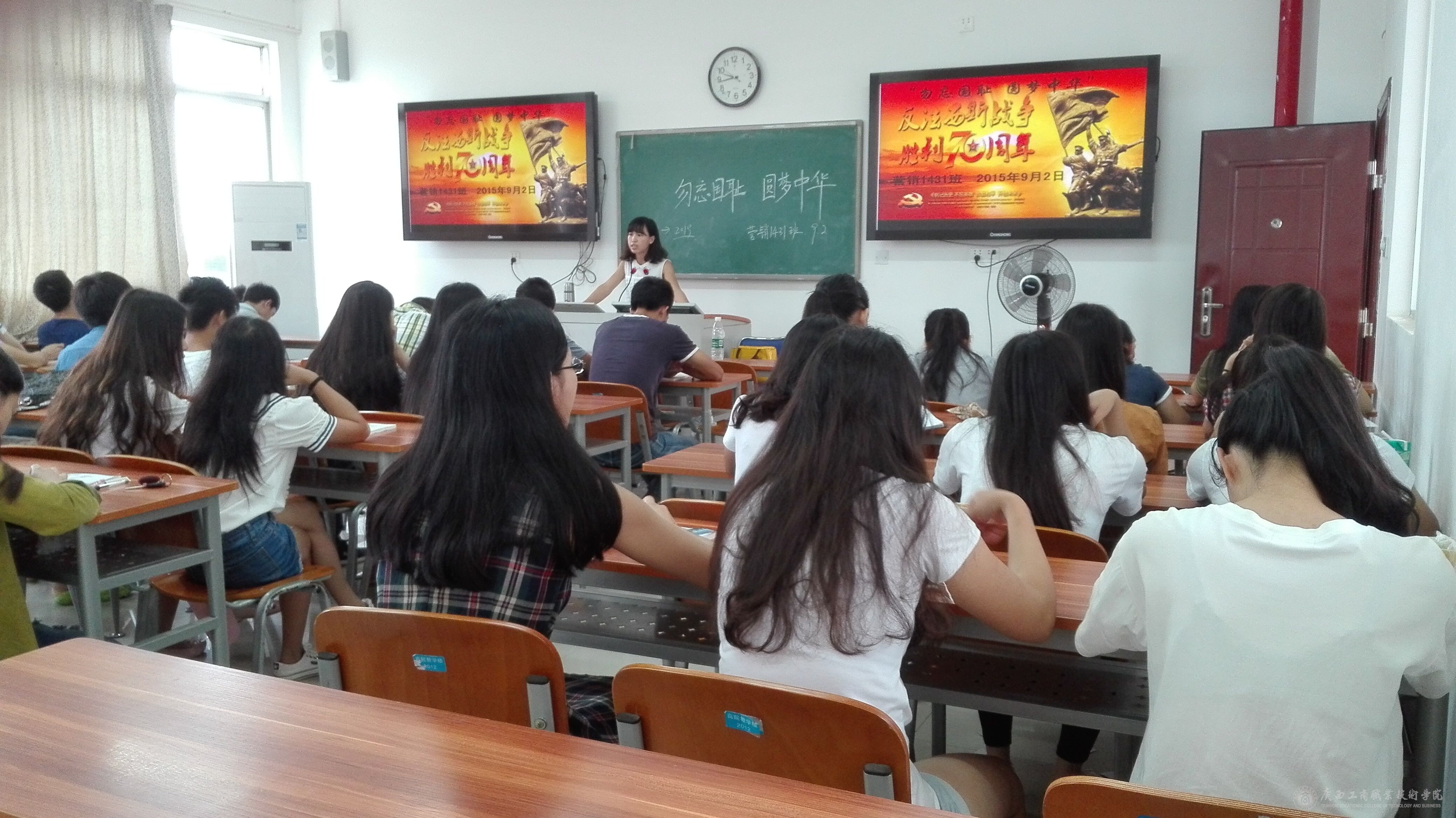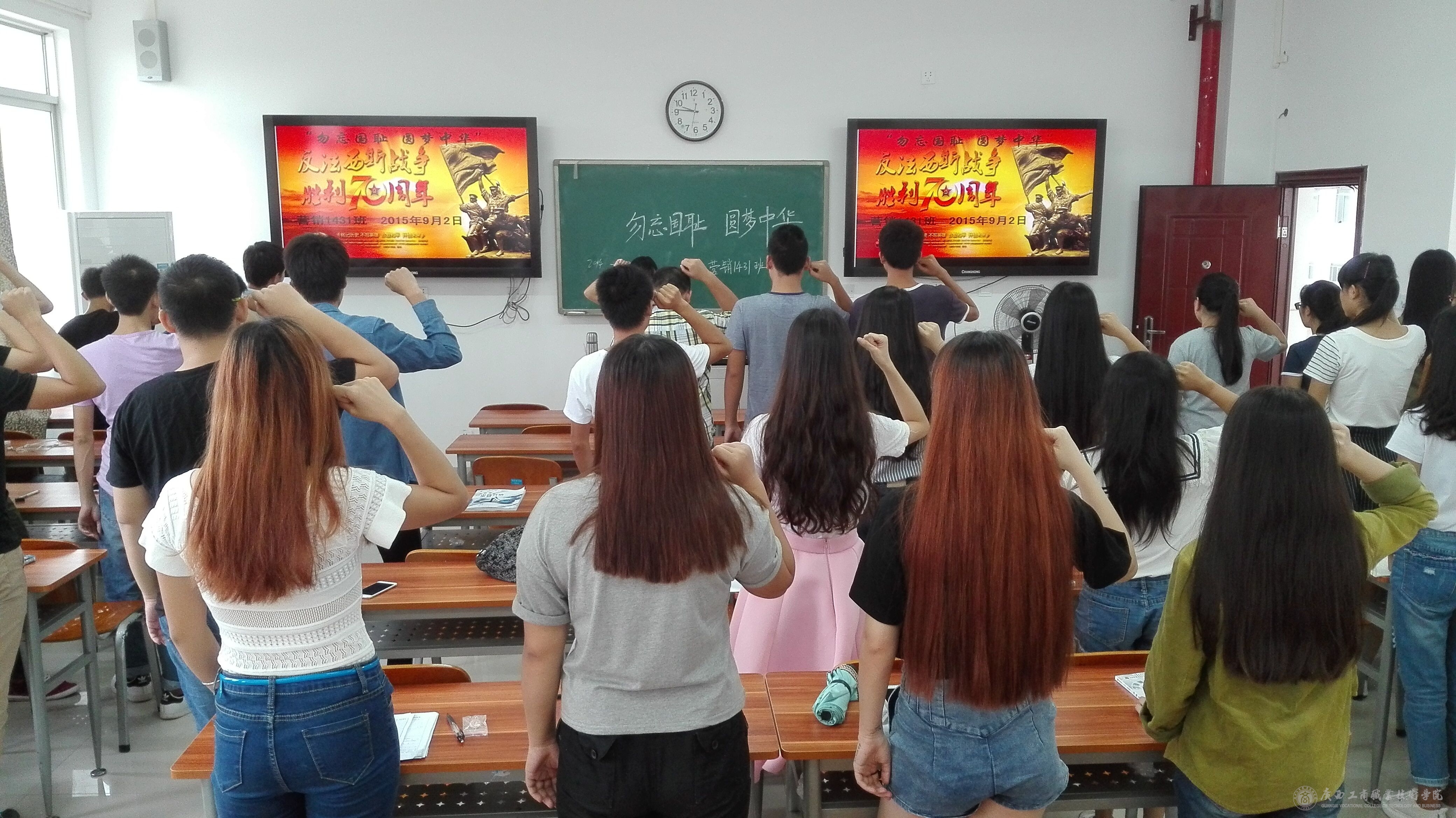 抗日戰(zhàn)爭暨反法西斯戰(zhàn)爭勝利70周年大閱兵在即,為弘揚(yáng)偉大的抗戰(zhàn)精神,唱響愛黨、愛國、愛社會主義的時代主旋律,激發(fā)正能量,培養(yǎng)廣大師生的愛國情感,銘記慘痛歷史,珍惜當(dāng)下,為實現(xiàn)偉大的中國夢而努力奮斗,我系領(lǐng)導(dǎo)高度重視,并于開學(xué)第一周積極組織師生開展抗戰(zhàn)勝利70周年系列教育活動。