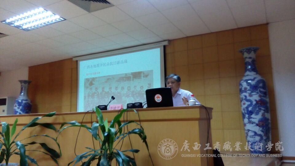 下午3點(diǎn),廣西人的抗戰(zhàn)主題講座正式開始,廣西抗戰(zhàn)文化研究會(huì)會(huì)長李建平教授擔(dān)任主講嘉賓,他的動(dòng)情地演講,讓大家不知覺地走進(jìn)了廣西抗戰(zhàn)時(shí)期中革命先輩浴血奮戰(zhàn)的歷史長河中。李教授圖文并茂的講座讓大家充分地認(rèn)識(shí)到?jīng)]有共產(chǎn)黨就沒有新中國,沒有抗戰(zhàn)英烈就沒有現(xiàn)在的我們。會(huì)后他號(hào)召大家要保護(hù)抗戰(zhàn)遺址,抗戰(zhàn)文物,這樣才能讓我們的子子孫孫以物思恥,牢記教訓(xùn)。