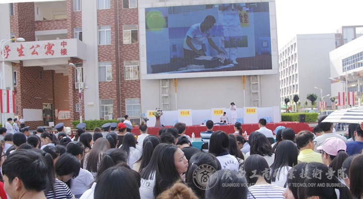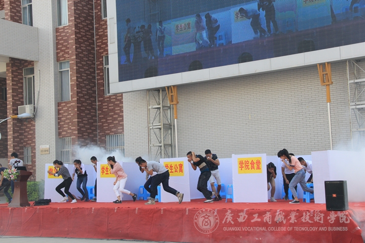 為了進一步加強學(xué)校安全工作,增強學(xué)校師生消防安全意識,提高學(xué)生對突發(fā)事件的應(yīng)急撲救處置能力,2015年9月15日下午,我院在校本部籃球場舉辦了2015年度應(yīng)急演練活動。學(xué)院副院長李仕欽、南寧市西鄉(xiāng)塘消防大隊領(lǐng)導(dǎo)、學(xué)院相關(guān)部門負責(zé)同志出席活動,學(xué)院2015級全體學(xué)生參加活動 ?;顒佑珊笄诠芾硖幐碧庨L莫春華主持。