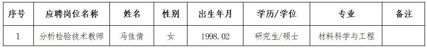 根據(jù)《廣西壯族自治區(qū)事業(yè)單位公開(kāi)招聘人員實(shí)施辦法》(桂人社發(fā)〔2011〕155號(hào))、《關(guān)于進(jìn)一步規(guī)范區(qū)直事業(yè)單位公開(kāi)招聘工作的通知》(桂人社辦發(fā)〔2013〕135號(hào))、《關(guān)于進(jìn)一步完善事業(yè)單位公開(kāi)招聘工作的通知》(桂人社規(guī)〔2021〕7號(hào))和《廣西工商職業(yè)技術(shù)學(xué)院2023年第二批公開(kāi)招聘非實(shí)名人員控制數(shù)人員公告》相關(guān)規(guī)定,經(jīng)公開(kāi)招聘規(guī)定的程序,經(jīng)研究,擬聘用馬佳倩同志到我院工作,現(xiàn)將擬聘人員名單(第三輪)予以公示,公示期為7日(2024年4月1日至2024年4月7日)。公示期內(nèi)如對(duì)擬聘人員有異議,請(qǐng)以書(shū)面形式,并署真實(shí)姓名、聯(lián)系方式及聯(lián)系地址,于2024年4月7日18時(shí)前寄送到廣西工商職業(yè)技術(shù)學(xué)院人事處(直接送達(dá)以送達(dá)日期為準(zhǔn),郵寄以寄出郵戳為準(zhǔn))。地址:廣西南寧市鵬飛路15號(hào)廣西工商職業(yè)技術(shù)學(xué)院人事處(2212辦公室);聯(lián)系人:李老師、詹老師;郵編:530008;電話:0771-3160065。如實(shí)反映擬聘用人員的有關(guān)問(wèn)題受法律保護(hù)。