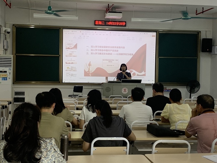 2024年6月11日下午,會計學(xué)院黨總支在A2-301組織專題政治理論學(xué)習(xí)會,學(xué)習(xí)內(nèi)容涵蓋了國家安全教育、中國共產(chǎn)黨黨史以及廉潔文化建設(shè)三個重要領(lǐng)域,旨在提升學(xué)院教師們的思想政治素養(yǎng)和理論水平。本次學(xué)習(xí)會由會計學(xué)院黨總支書記、院長粟衛(wèi)紅主持,學(xué)院全體教師參加。