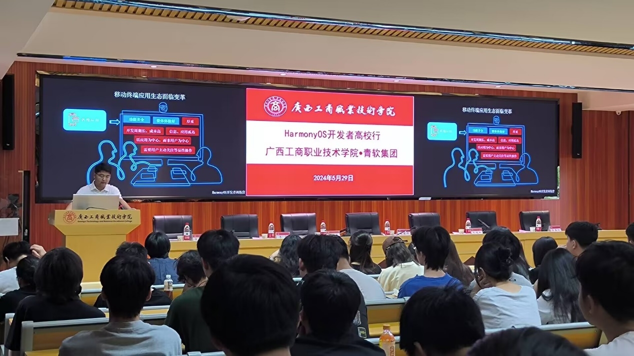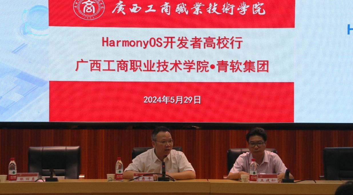 2024年5月29日上午,HarmonyOS開發(fā)者高校行開營(yíng)儀式在鵬飛校區(qū)2145會(huì)議室順利舉行。本次活動(dòng)由信息與設(shè)計(jì)學(xué)院牽頭,青軟創(chuàng)新科技集團(tuán)股份有限公司承辦。廣西工商職業(yè)技術(shù)學(xué)院副校長(zhǎng)闕勇平,青軟創(chuàng)新科技集團(tuán)股份有限公司兩廣總監(jiān)王建松,信息與設(shè)計(jì)學(xué)院院長(zhǎng)張麗勇,副院長(zhǎng)唐燕雯等師生代表180余人參加了此次開營(yíng)儀式,活動(dòng)由信息與設(shè)計(jì)學(xué)院院長(zhǎng)張麗勇主持。