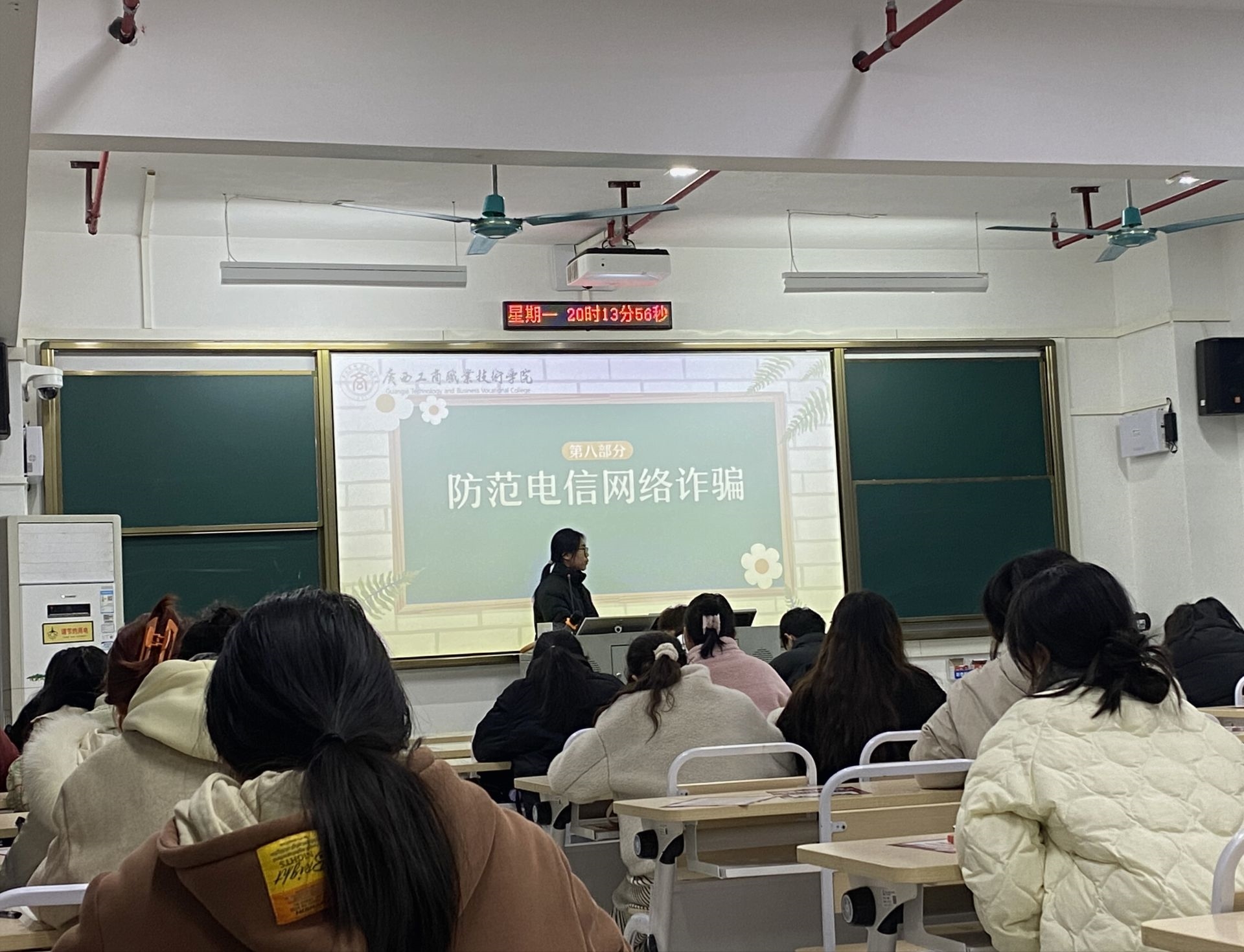 數(shù)會(huì)2308班防范電信網(wǎng)絡(luò)詐騙班會(huì)現(xiàn)場(chǎng)