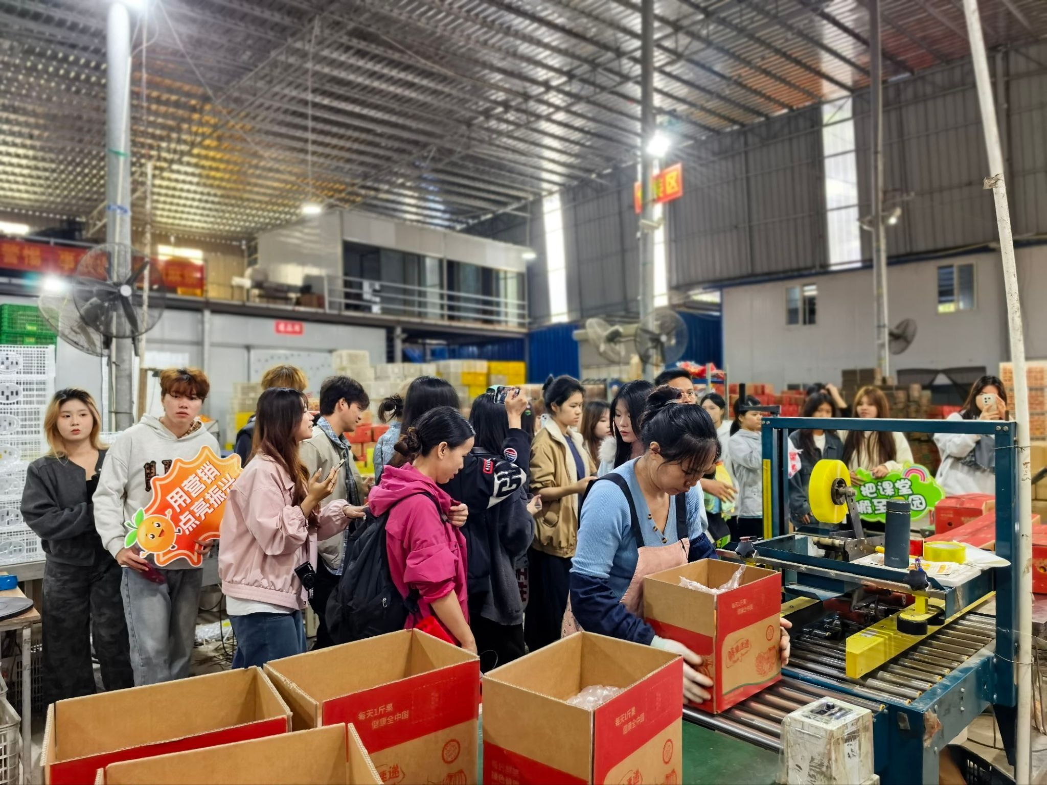 師生一行先后走訪了鑫天蘭農(nóng)業(yè)有限公司果園基地與廣西鳴鳴果業(yè)有限公司果園基地,實(shí)地考察沃柑種植環(huán)境、采摘流程與品控體系。企業(yè)負(fù)責(zé)人詳細(xì)介紹了沃柑的品種特點(diǎn)、種植技術(shù)與品牌發(fā)展歷程,并帶領(lǐng)師生深入果園和供應(yīng)鏈工廠,講解果品分級(jí)、包裝與供應(yīng)鏈運(yùn)作模式。學(xué)生們結(jié)合專業(yè)學(xué)習(xí)需求,重點(diǎn)圍繞目標(biāo)客群、產(chǎn)品賣點(diǎn)、品牌打造、市場推廣等內(nèi)容展開實(shí)地訪談與素材采集,為后續(xù)撰寫市場調(diào)研報(bào)告、創(chuàng)作推廣內(nèi)容積累了一手資料。