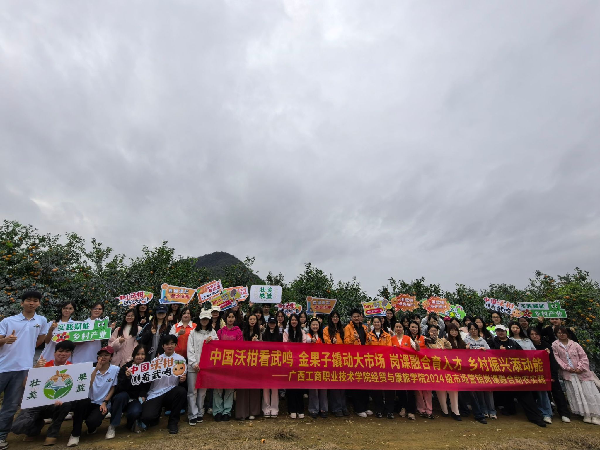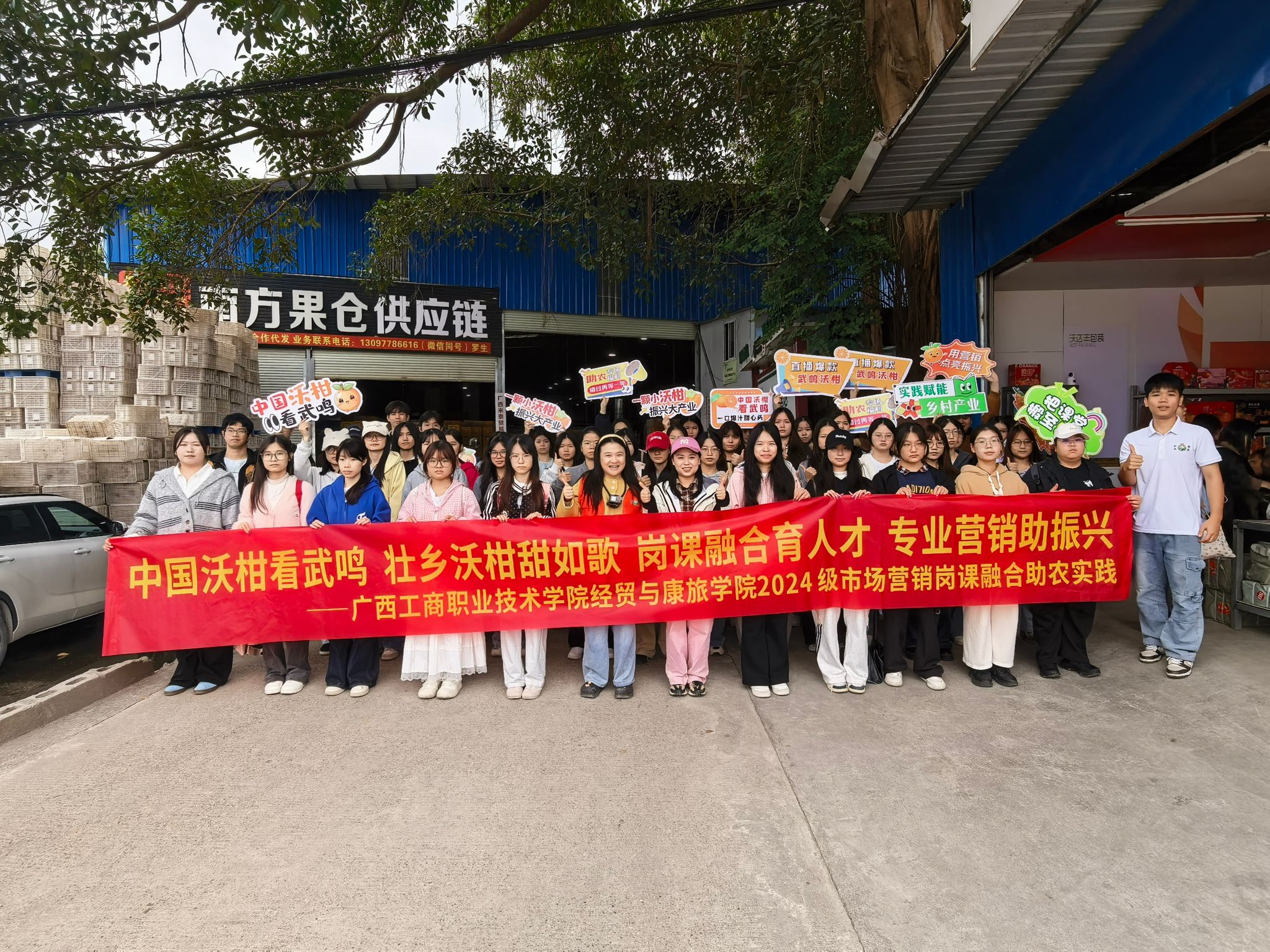 為深化崗課融合育人模式,將課堂理論與行業(yè)實(shí)踐深度融合,切實(shí)提升市場營銷專業(yè)學(xué)生的實(shí)踐應(yīng)用能力,12月23日,經(jīng)貿(mào)與康旅學(xué)院市場營銷專業(yè)教師帶領(lǐng)2024級(jí)市場營銷專業(yè)5個(gè)班級(jí)學(xué)生前往南寧武鳴區(qū)沃柑果園基地開展實(shí)地調(diào)研,沉浸式探尋沃柑產(chǎn)業(yè)發(fā)展密碼。本次活動(dòng)是2024級(jí)市場營銷專業(yè)《崗課融合實(shí)踐》課程的重要教學(xué)環(huán)節(jié),旨在通過真實(shí)產(chǎn)業(yè)場景,提升學(xué)生市場調(diào)研、內(nèi)容創(chuàng)作與營銷策劃能力。