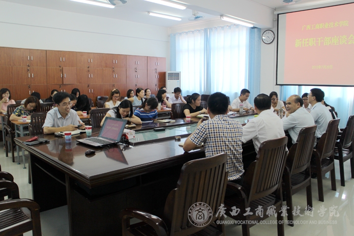 • 2015年7月20日上午,我院在校本部教學樓2019會議室召開新任職干部座談會,學院黨委書記覃武云、黨委副書記蒙啟成出席會議,2015年以來新任職的科級以上干部及黨政部門新到崗工作人員共29人參加了會議,黨委組織部...