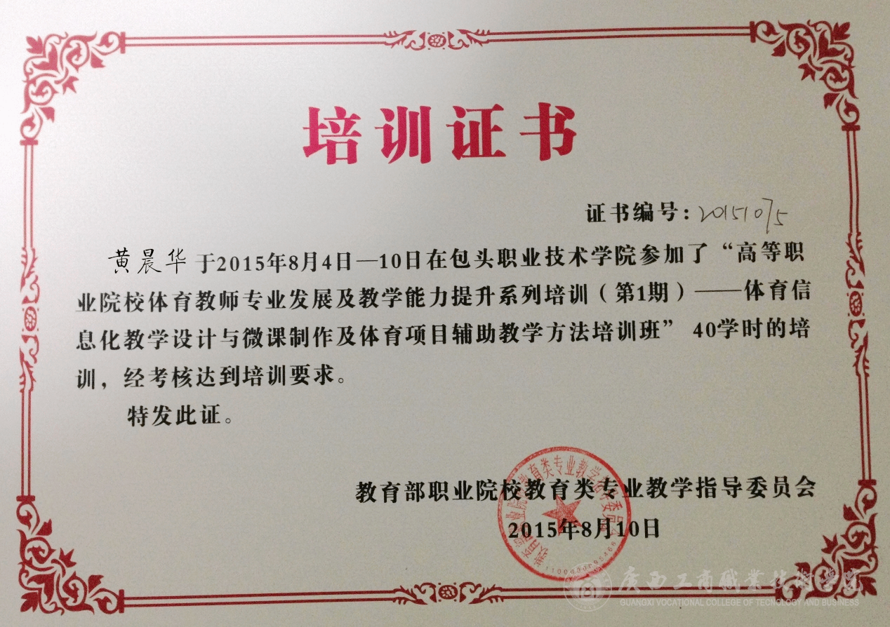 • 2015年8月4—10日,教育部職業(yè)院校教育類專業(yè)教學指導委員會在內蒙古包頭市舉辦2015年全國高等職業(yè)院校體育教師專業(yè)發(fā)展及教學能力提升系列培訓(第一期)——體育信息化教學設計與微課制作及體育項目輔助教學方...