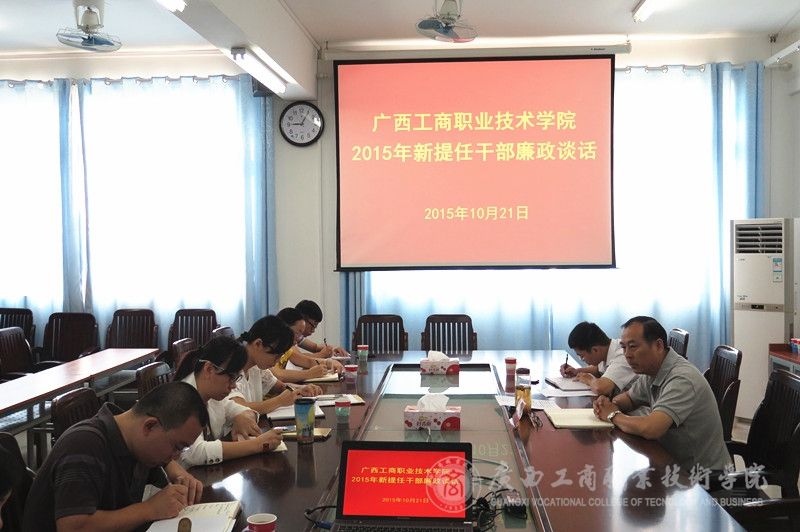 • 10月21日上午,學(xué)院紀(jì)委辦公室組織召開(kāi)2015年新提任干部廉政談話會(huì)。學(xué)院黨委副書(shū)記、紀(jì)委書(shū)記蒙啟成對(duì)新提任干部進(jìn)行談話,2015年新提任干部參加了會(huì)議。 會(huì)上,蒙啟成指出本次談話的目的、意義和必要性。他談到...