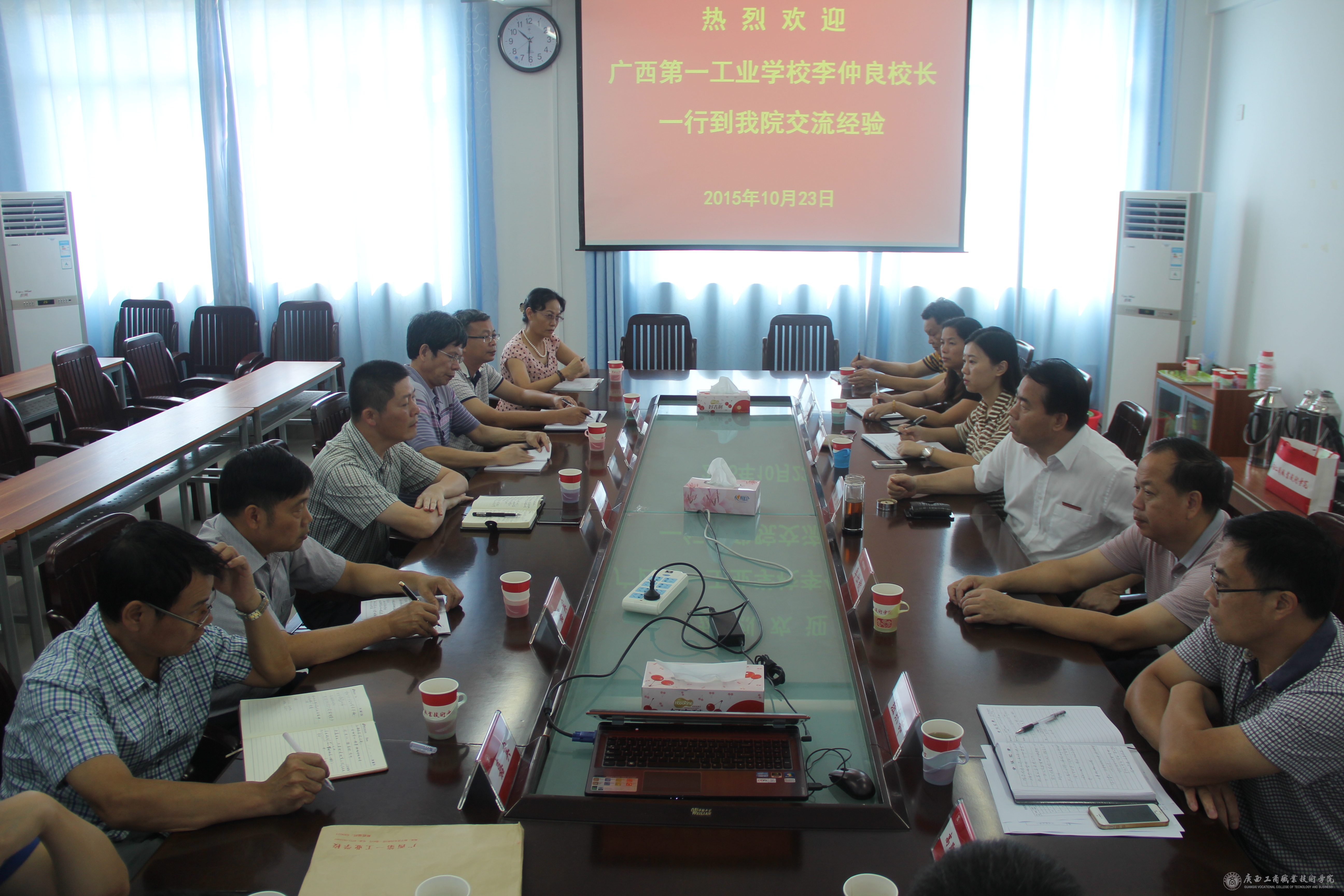 • 10月23日上午,廣西第一工業(yè)學(xué)校李仲良校長(zhǎng)一行9人到我院交流經(jīng)驗(yàn)。我院黨委書(shū)記覃武云、院長(zhǎng)陳杰熱情接待了李仲良校長(zhǎng)一行。 隨后雙方在2109會(huì)議室,就師資隊(duì)伍、專業(yè)建設(shè)和校園建設(shè)等議題進(jìn)行座談交流。陳杰院...