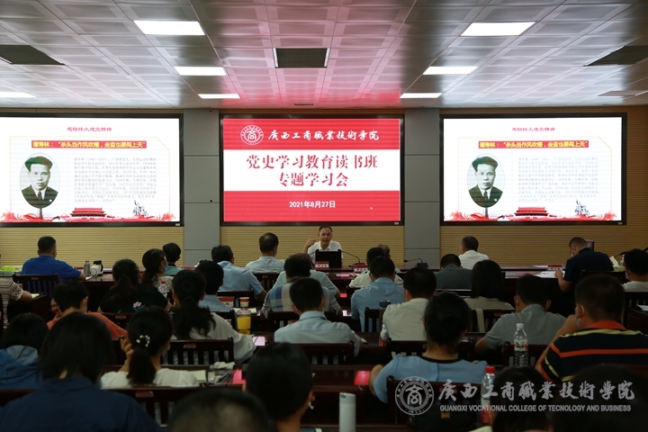 • 8月27日,廣西社會科學院院長陳立生到我院為黨史學習教育讀書班成員作廣西地方黨史專題講座。學院黨委書記覃武云主持講座。全體讀書班成員參加講座。(講座現(xiàn)場)陳立生以“革命理想高于天——廣西地方黨史專題講...