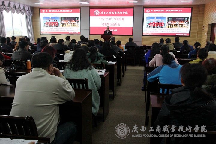 • 2015年12月16日下午2點(diǎn)40分我院在2119教室召開“三嚴(yán)三實(shí)”專題教育進(jìn)展情況通報(bào)會(huì)。學(xué)院黨委書記覃武云、學(xué)院院長陳杰、副廳級調(diào)研員黃永蓬和學(xué)院全體在職黨員、學(xué)院副高職稱及以上教師、學(xué)院教代會(huì)代表等參加了...