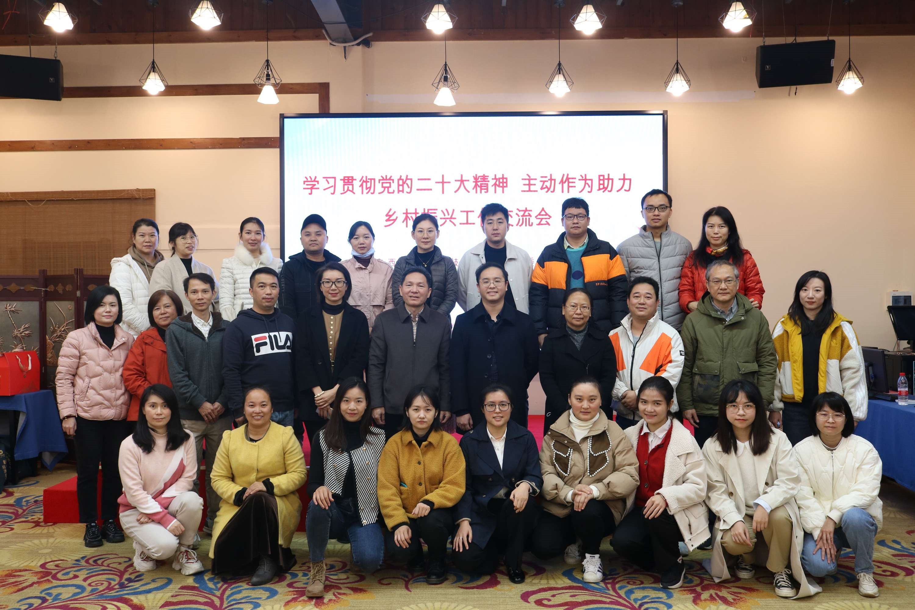 • 2022年12月9日,學(xué)院工會聯(lián)合廣西農(nóng)村投資集團(tuán)一另一七農(nóng)產(chǎn)供應(yīng)鏈有限公司開展“學(xué)習(xí)貫徹黨的二十大精神 主動作為助力鄉(xiāng)村振興”工作交流活動。工會干部、教代會代表、教師代表近60人參加活動。(與會人員合影)...