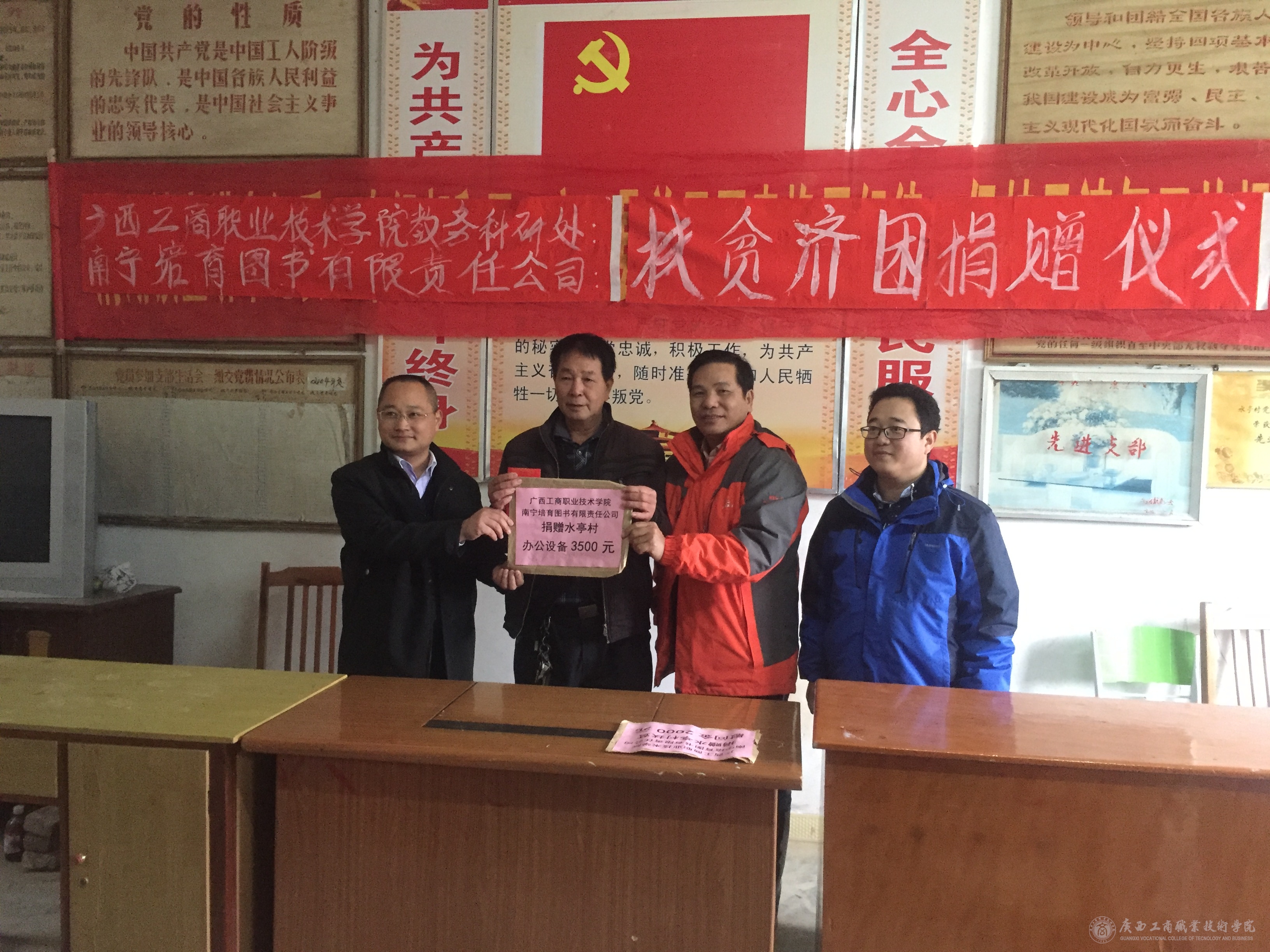 • 陸川縣清湖鎮(zhèn)水亭村是當(dāng)?shù)氐呢毨Т澹k公條件非常簡陋,群眾辦事非常不方便。教務(wù)科研處韋勝強(qiáng)處長在該村進(jìn)行三個(gè)月的精準(zhǔn)扶貧識(shí)別過程中了解了這一情況,及時(shí)與南寧培育圖書有限責(zé)任公司領(lǐng)導(dǎo)溝通,決定教務(wù)科研...