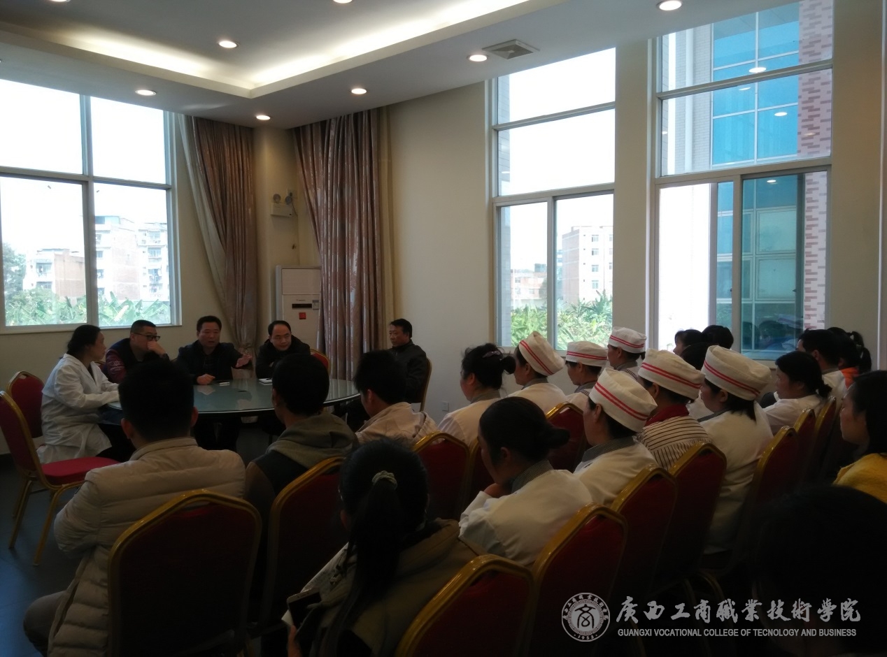 • 2月29日,是開學(xué)的第一天。我院在食堂二樓召開學(xué)院食堂全體從業(yè)人員工作會(huì)議。后勤管理處(保衛(wèi)處)主管食堂的領(lǐng)導(dǎo)、食品衛(wèi)生科、醫(yī)務(wù)所等相關(guān)人員參加了會(huì)議。 會(huì)上,莫春華副處長首先對(duì)全體食堂員工一...