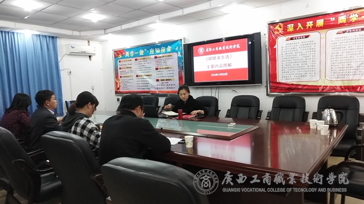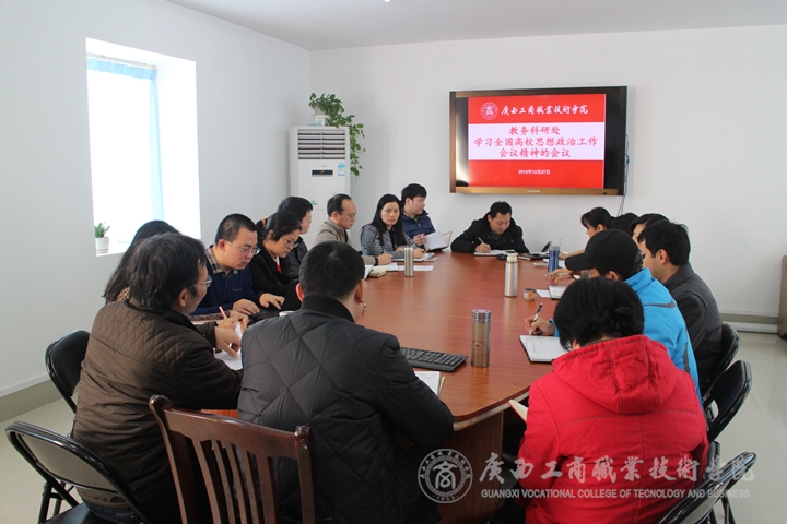 • ??????? 2016 年 12 月 23 日上午,我院在校本部召開學習全國高校思想政治工作會議精神座談會。學院黨委書記覃武云,黨委副書記、紀委書記蒙啟成出席會議。黨委組織部、黨委宣傳部、黨委學生工作部、教務科研處、...