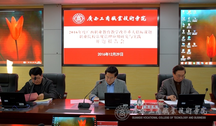 • 2016年12月29日下午,我院召開2016年度廣西職業(yè)教育教學(xué)改革重大招標(biāo)課題開題評(píng)議報(bào)告會(huì),由學(xué)院院長(zhǎng)、首席專家陳杰教授主持的“職業(yè)院校常規(guī)管理應(yīng)用研究與實(shí)踐”課題順利通過開題論證。 ...