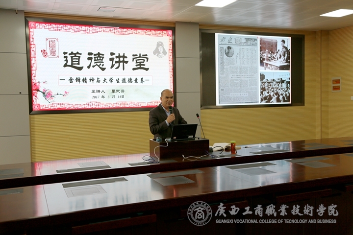 • 2017年3月14日下午,廣商院2017年道德大講堂于校本部視頻會議室成功拉開帷幕。學院黨委書記覃武云同志受邀作為今年道德大講堂的首位主講人,為來自各系的師生代表做了一場名為 “雷鋒精神與大學生道德素養(yǎng)”的精...