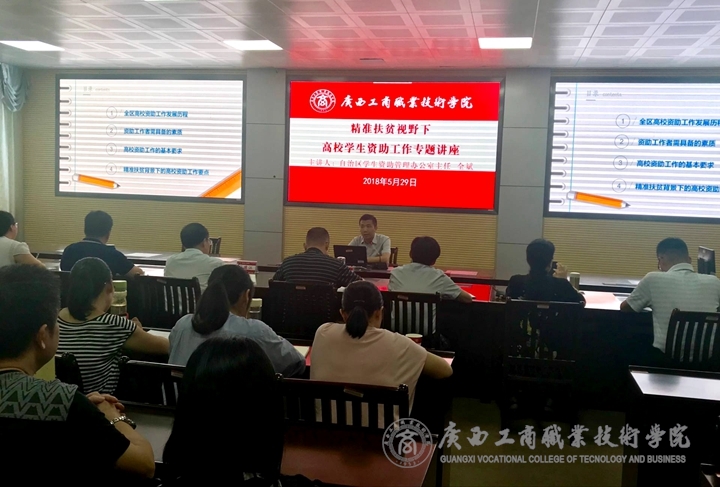 • ??????? 5月29日下午,我院于鵬飛校區(qū)視頻會議室舉辦主題為“精準(zhǔn)扶貧視野下 高校學(xué)生資助工作”專題講座。培訓(xùn)主講人為自治區(qū)學(xué)生資助管理辦公室主任全斌。 ??????? 全斌從全區(qū)高校資助工作發(fā)展歷程、資助工作者...
