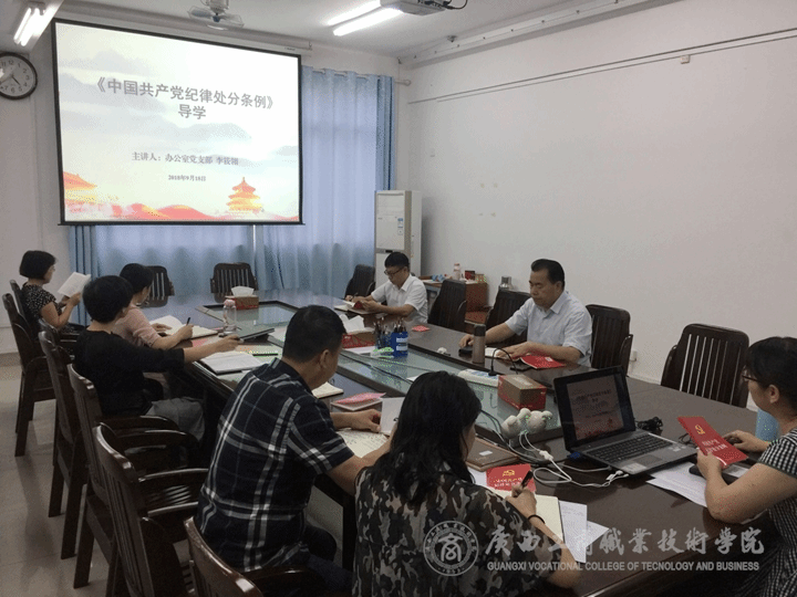 • 9月18日下午,辦公室黨支部組織支部全體黨員在院本部2109會議室學習全國教育大會精神及新修訂的《中國共產(chǎn)黨紀律處分條例》。會議由支部組織委員李筱翎同志主持,陳杰院長以普通黨員身份參加了此次黨課學習活動。...
